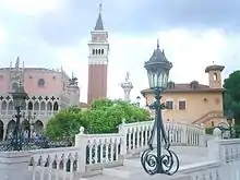הביתן האיטלקי נועד להציג את תרבותה, מטבחה ואופייה של איטליה. הביתן בנוי תוך עירוב של סגנונות אדריכלות ונציאני ורומאי. במבנה דגם של כיכר סן מרקו ושל הקמפנילה - מגדל הפעמונים של בזיליקת סן מרקו וכן מבנה המהווה חיקוי של ארמון הדוג'ים. בביתן אין מתקן שעשועים והוא כולל חנויות ומסעדה (מסעדת "L'Originale Alfredo di Roma Ristorante" - שנוסדה על ידי צאצאו של השף אלפרדו די ללו, ממציא הפטוצ'יני אלפרדו).