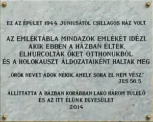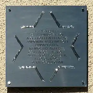 {{{תיאור}}}, בארכיון האינטרנט a zsidótörvények és rendeletek hatályon kívüli helyezéséről - ↑ A zsidók által lakható épületek kijelölése a székesfőváros I–XIV. közigazgatási kerületében