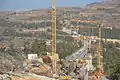 - מבט על תוואי הגשר והמנופים שמקימים את ניצביו מפתח מנהרה 4. באופק ממול פתח מנהרה 3A.