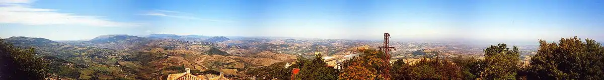 ![]() מראה העיר סן מרינו מהר טיטאנו. במרכז התמונה נראה הפלאצו פובליקו | ||
