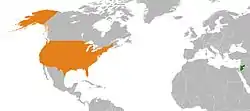 אמריקה | אורוגוואי • אל סלוודור • אנטיגואה וברבודה • אקוודור • ארגנטינה • ארצות הברית • איי בהאמה • בוליביה • בליז • ברבדוס • ברזיל • ג'מייקה • גואטמלה • גיאנה • גרנדה • דומיניקה • האיטי • הונדורס • הרפובליקה הדומיניקנית • ונצואלה • טרינידד וטובגו • מקסיקו • ניקרגואה • סורינאם • סנט וינסנט והגרנדינים • סנט לוסיה • סנט קיטס ונוויס • פנמה • פרגוואי • פרו • צ'ילה • קובה • קולומביה • קוסטה ריקה • קנדה | |