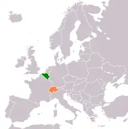 - שווייץ מיוצגת בבלגיה בדרג השגרירות באמצעות שגרירות רשמית שהיא מחזיקה בבריסל, בירת המדינה.[6] שווייץ מיוצגת בבלגיה גם בדרג הקונסולרי באמצעות שתי קונסוליות רשמיות שהיא מחזיקה באנטוורפן,[7] ובליאז'.[8]