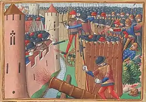 כיבושה של עיר מבוצרת כהלכה התרחש זמן רב ויכול היה להימשך שנים. היו שתי טקטיקות עיקריות לכיבושן של ערים בצורות - מצור והסתערות. השיטה הראשונה הייתה בטוחה יותר, נחלה הצלחות רבות יותר והייתה כרוכה במספר אבידות קטן יחסית למטיל המצור. הטקטיקה השנייה הייתה כרוכה בסכנה רבה ולא פעם נחלה כישלון, למעט מקרים שבהם לתוקף היה עדיפות מספרית גדולה, או סיוע מתוך החומות, או במקרה של התקפת פתע. המצור יכול היה להימשך שנים, כאמור, כי לרוב הערים הייתה אספקה גדולה מאוד של מזון ומים. בדרך כלל שילבו בין שתי השיטות, כאשר הצר היה מתקיף את העיר לפרקים על מנת לנסות את מגיניה. הארטילריה הוכנסה לשימוש כבר מתחילת המלחמה, אך היא עדיין הייתה לא מפותחת דיה ומשקלה במלאכת המצור היה נמוך. עם השנים, לקראת פלישתו של הנרי החמישי בתחילת המאה ה־15 לצרפת, השתפרה משמעותית איכות התותחים שעמדו לרשות שני הצדדים. תותחים גדולים יכלו לירות פגזי אבן במשקל של עשרות ואף מאות קילו; חומות העיר שתוכננו מאות שנים לפני הופעתם של התותחים, לא עמדו ברוב המקרים בפני הפגזה מסיבית שכזאת.