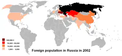 בקרב אוכלוסיית תושבי רוסיה נספרו 1,025,413 אזרחים זרים ו-429,881 חסרי אזרחות.