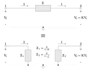 במעגל ליניארי, אם קיים ענף בעל עכבה ומשני צידיו מאולצים מתחים וגם , ניתן "לחתוך" אותו ולקבל 2 קצוות. את כל אחת מהקצוות ניתן לחבר לאדמה, והעכבה של כל אחד מהחצאים נתונה על ידי וגם בהתאמה. כאשר.