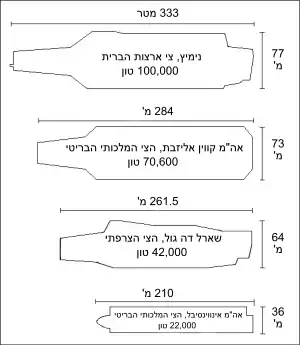 נימיץ (CVN-68) | 333 מטרים | 100,020 טון | גרעינית | CATOBAR | 3 במאי 1975 |