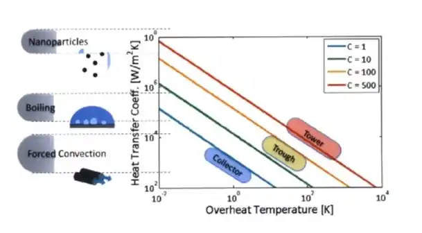 בעשר השנים האחרונות, נערכו ניסויים רבים באופן נומרי ואנליטי כדי לאמת את החשיבות של הננו-נוזלים. מהטבלה הבאה[4] ניתן לראות באופן חד משמעי שקולטים המבוססים על הננו-נוזלים בעלי יעילות גבוהה יותר מקולטים קונבנציונליים. ההבדל המהותי בין הקולט הקונבנציונלי לבין הקולט המבוסס על ננו-נוזל טמון במצב של חימום הנוזל עליו מתבצעת העבודה. במקרה הראשון אור השמש נקלט על ידי משטח ואחר כך עובר לנוזל העבודה (דרך שלב ביניים) ובמקרה השני אור השמש נקלט באופן ישיר על ידי נוזל העבודה (דרך מוליך קרינה). המקלט אשר קולט את הקרינה מעביר את האנרגיה לננו-נוזל באמצעות פיזור וקליטה.