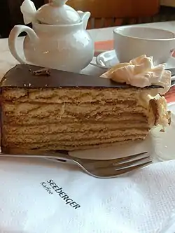 עוגות שכבות | עוגת מלאכים • באקויט גאטאו • דאקוויז • דובוש • טורט אסטרהאזי • עוגת חלב חם • עוגת קייב • עוגת מריה לואיז • קרם שניט • עוגת הנסיכה • פרינצרגנטנטורטה • עוגת קשת בענן • עוגת סארוואק • ספקקואק • טורט | |