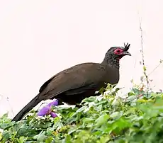 היא יכולה לנוע על הקרקע אך גם מעל ענפי היער, שם היא מחפשת מיני פירות ומגוונת בחרקים. היא חיה רוב הזמן בקבוצות קטנות של עד 10 עופות. עונת הרבייה שלה חלה בין מאי ליולי אז הזכרים מנפחים את נוצותיהם וקוראים לנקבות.