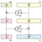 כאשר סיביות ו- סיביות והסימן הוא XOR. הסמל מייצג את רשת פייסטל עם פונקציית הסבב הפנימית המבוצעת פעמים עם מפתחות שונים. מרחב המפתח הוא סיביות. דרך אחרת להציג זאת היא ההרכבה: